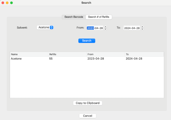 I started keeping track of the drums and the refills in a spreadsheet (see the Coding/VBA page) but knew I needed to have a better system. I took the data from the spreadsheet and converted it into a SQLite database. Then I built an app around it to be able to easily enter the drum information and perform various data searches.